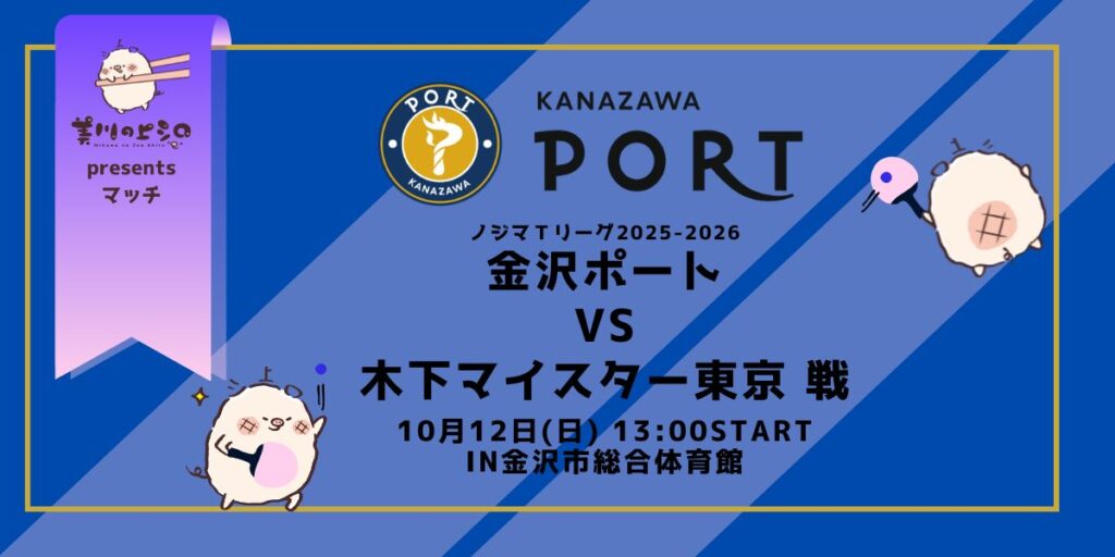 2025.10.12(日)金沢市総合体育館で、「美川の上シロ」冠タイトルの金沢ポートのホームマッチが開催されることになりました!!