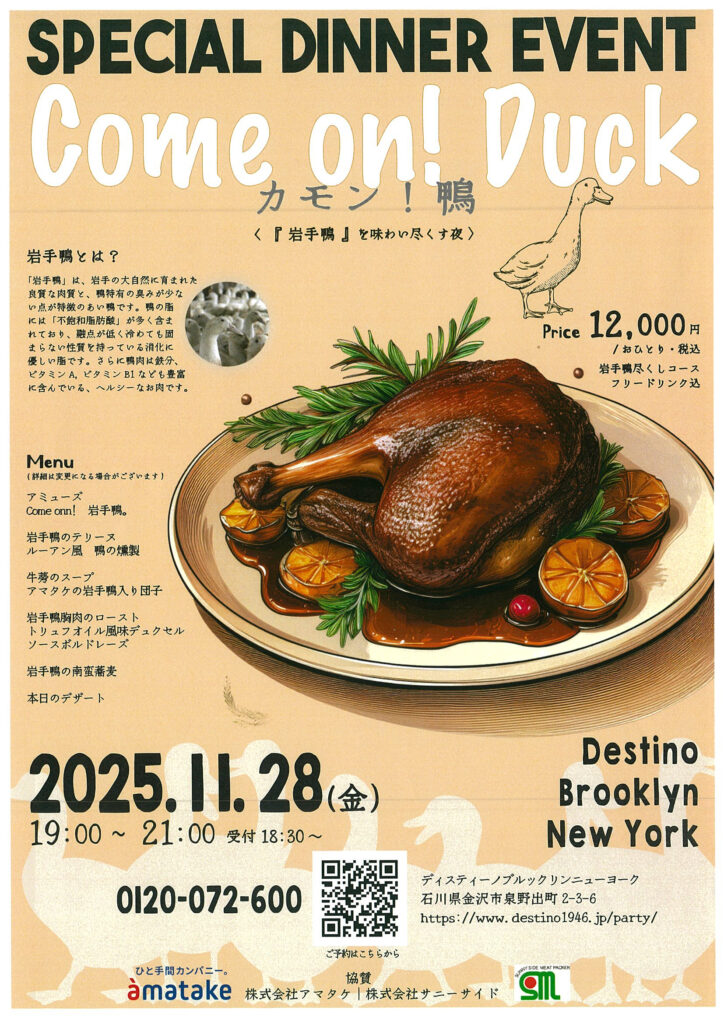 SPECIAL DINNER EVENT「Come on! Duck カモン!かも」<「岩手がも」を味わい尽くす夜>